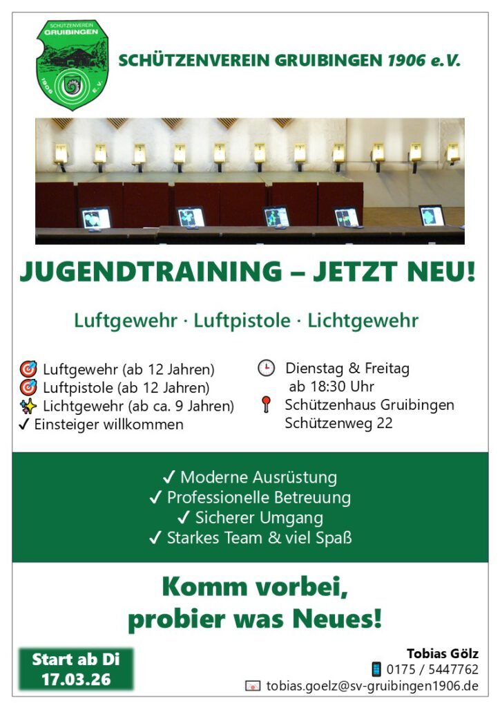 Die Kreismeisterschaften 2026 haben begonnen – und den Auftakt machten unsere jüngsten Vereinsmitglieder. In Hattenhofen gingen die Lichtgewehrschützen des SV Gruibingen an den Start. Die Nachwuchstalente im Alter von 8 bis 11 Jahren sammelten dabei wertvolle Wettkampferfahrung und lernten eine neue Schießanlage kennen.