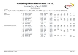 Luftgewehr-Landesliga Nord – LG-Mannschaft beendet Saison auf Rang drei
