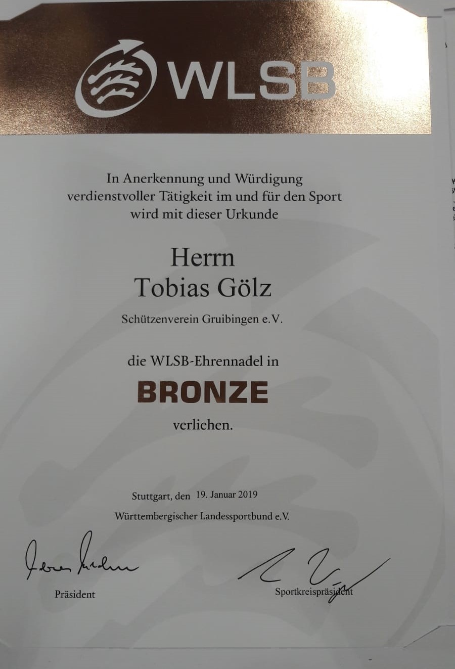WLSB-Ehrennadel in Bronze – Tobias Gölz, Martin Abt und Marco Darcis